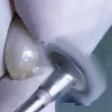 ハイブリッドレジンなどの補綴物の前工程で残った傷の除去から、光沢のある